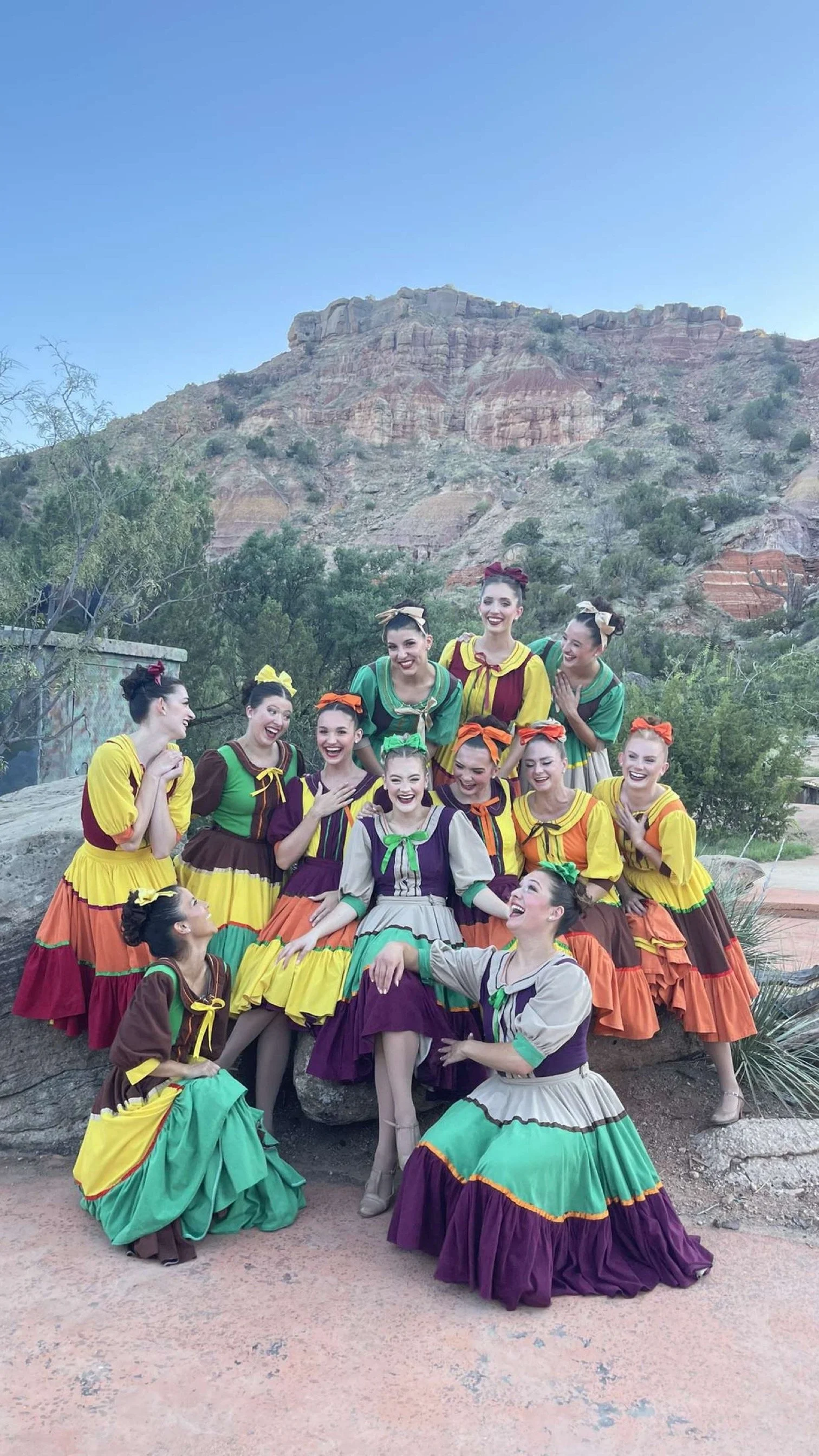 Summer of 2022, I was cast as a featured dancer in Texas the Outdoor Musical, performing in the Palo Duro Canyon Amphitheater. I trained for 3 weeks learning performance numbers as long as 10 minutes long, practicing partnering skills and tricks, and navigating performing OUTDOORS every night for 3 months!